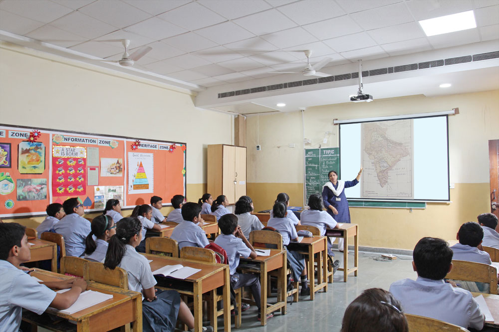 The fully air conditioned classrooms provide a conducive and comfortable environment where in the students are unperturbed by the changing weather conditions.The classrooms are well designed both aesthetically and functionally.